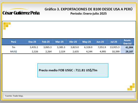 Para completar la trilogía de interrogantes se tiene el registro de exportaciones desde USA a Perú que se muestra en el gráfico 3, dónde se señala que ha habido despachos en el período enero-julio 2025